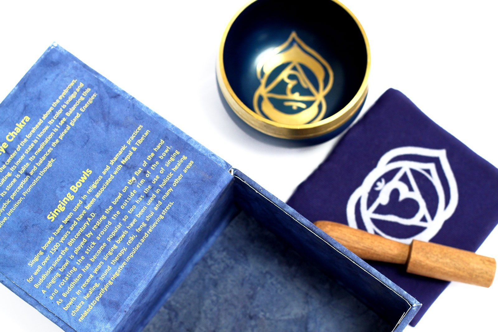 A taça  tibetana – Chakra Terceiro Olho, para além dos benefícios terapêuticos, é uma obra de arte sonora e visual. O seu design cuidado e a excecional qualidade de som, fazem dele um elemento que se destaca em qualquer espaço. Coloque esta tigela em seu santuário pessoal, para consolidar a sua energia e promover a estabilidade emocional.